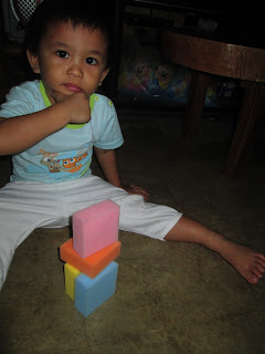 Here's my baby boy playing with his sponge blocks.