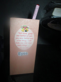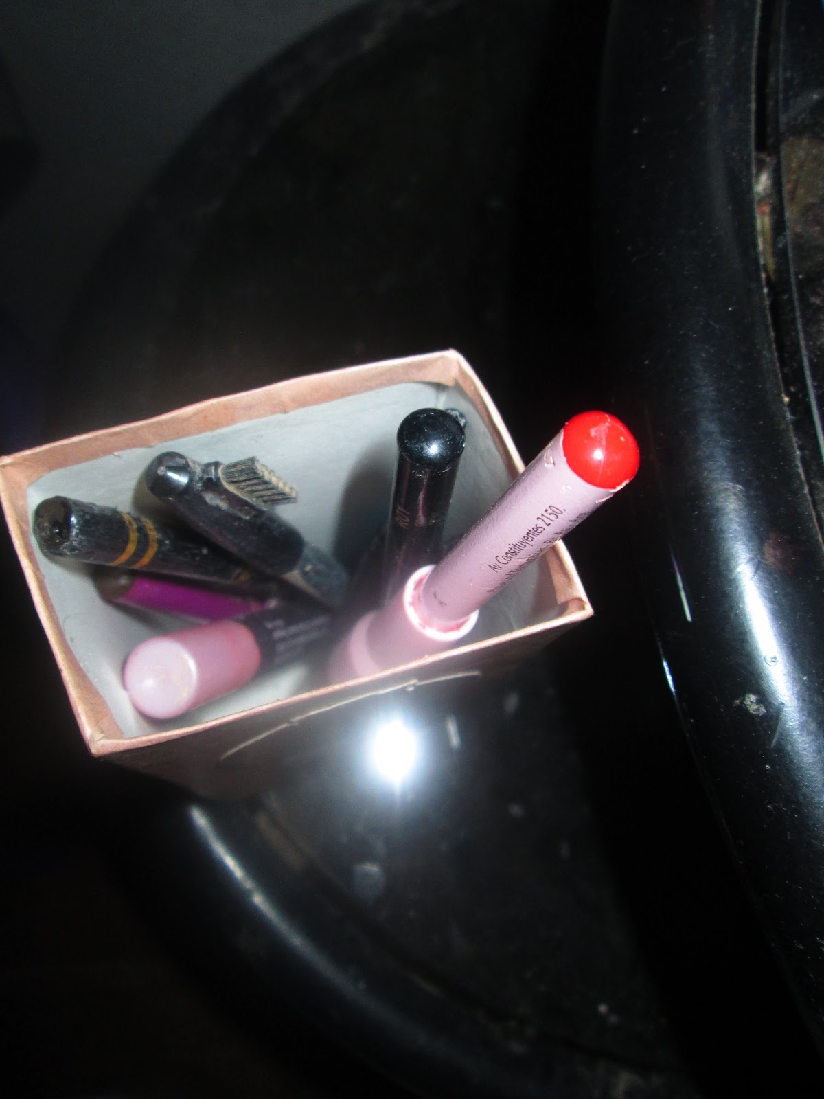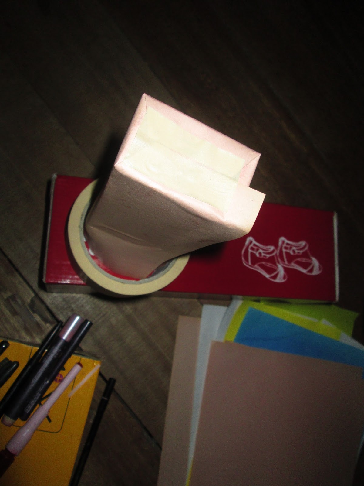 Are you one of those women who have lots of eye makeups and don't know how to organize it? I created an organizer for my aunt where she can put all her eyeliners inside. My materials? A box, decoupage medium, colored paper and some nice cutouts for decorations.