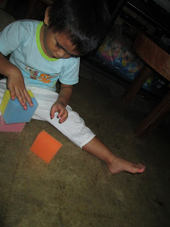 Anyway, I thought of buying him building blocks but I didn't because I thought he will throw it if he becomes bored. So, I bought him sponges as building blocks and he loves it. Even if he throws it, it's still quiet so mission accomplished!